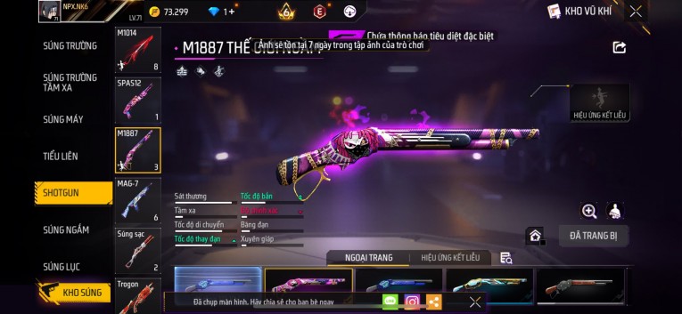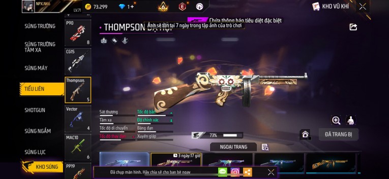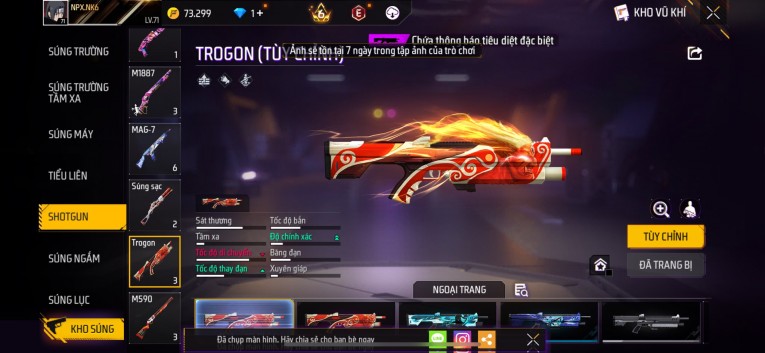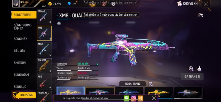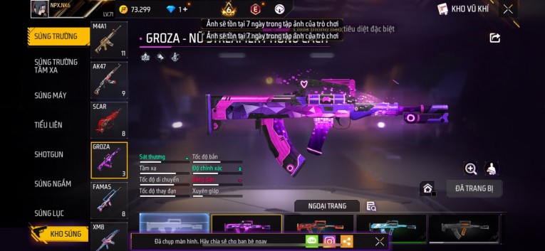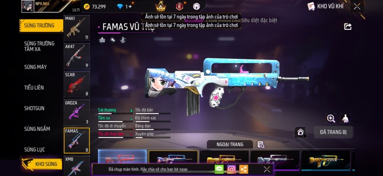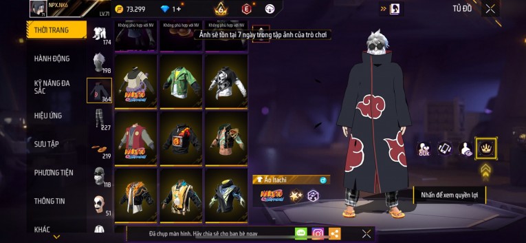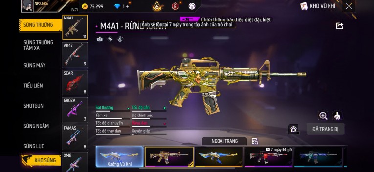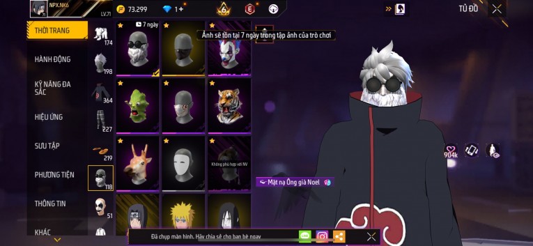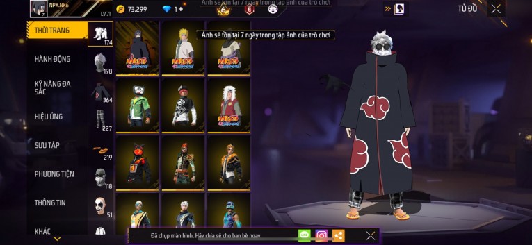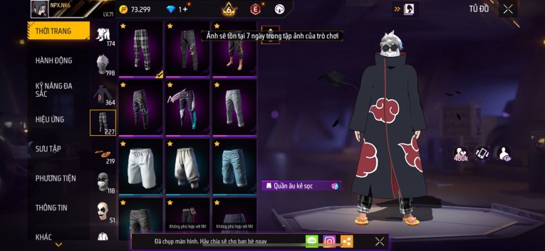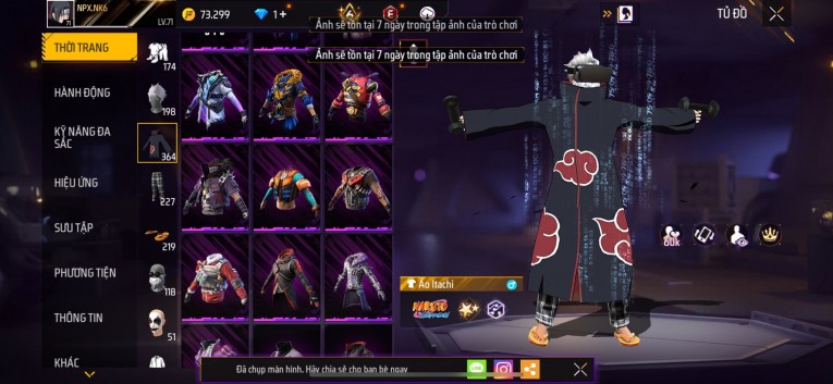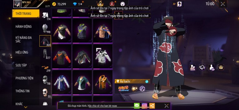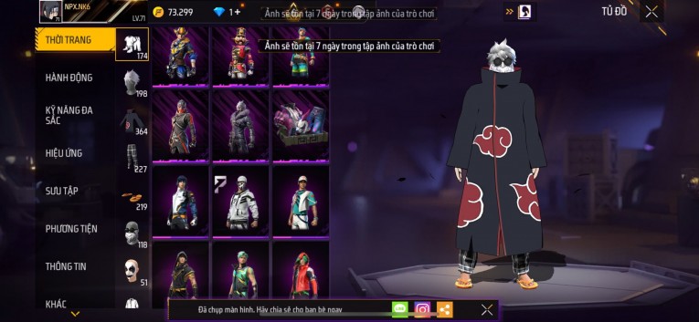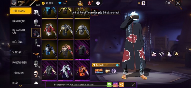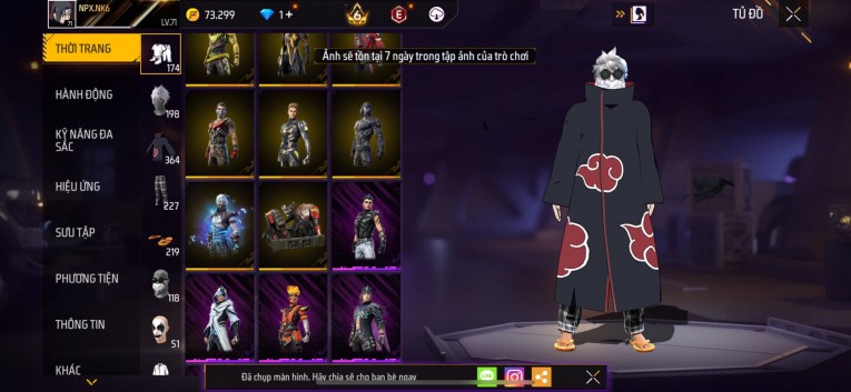 Acc chơi lâu, nhiều skin súng xịn, đầy đủ áo và phụ kiện nam. Đồ đủ dùng, đẹp mắt – vào chơi là chiến ngay! Phù hợp anh em thích skin đẹp, súng mạnh, acc ổn định.