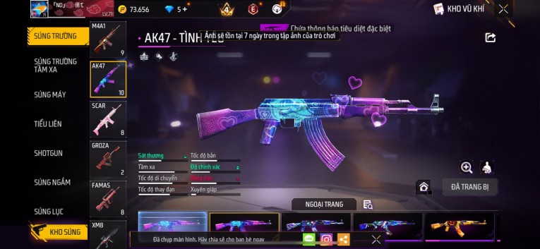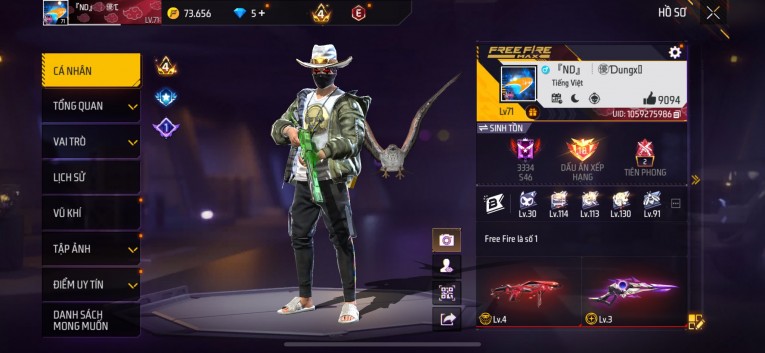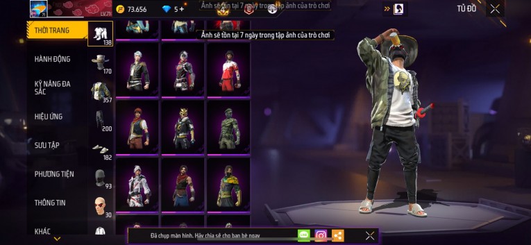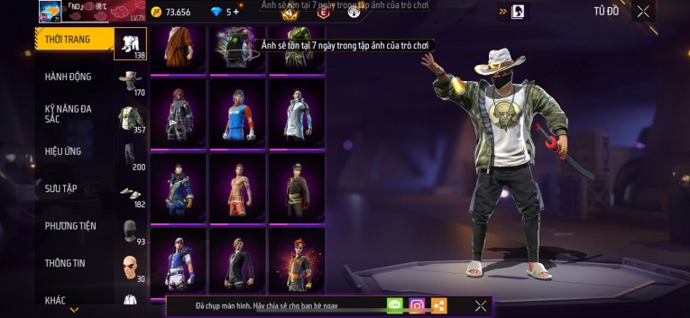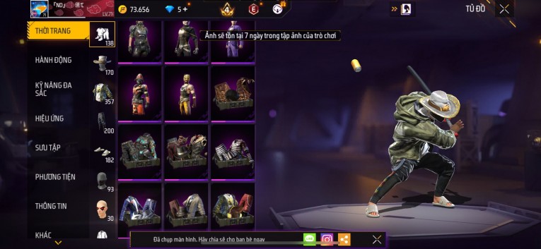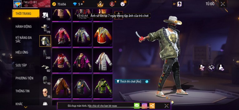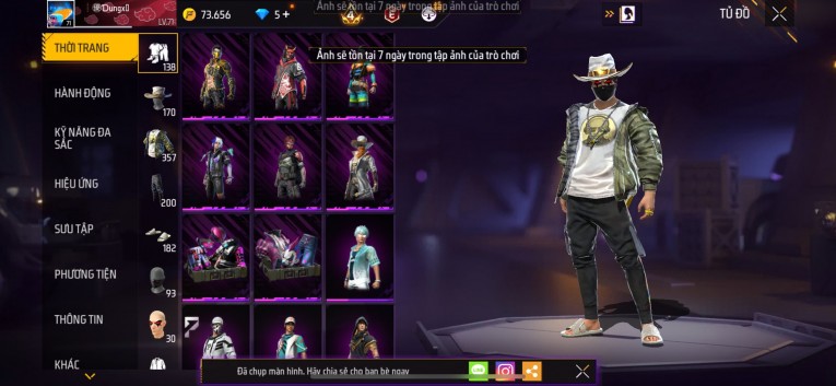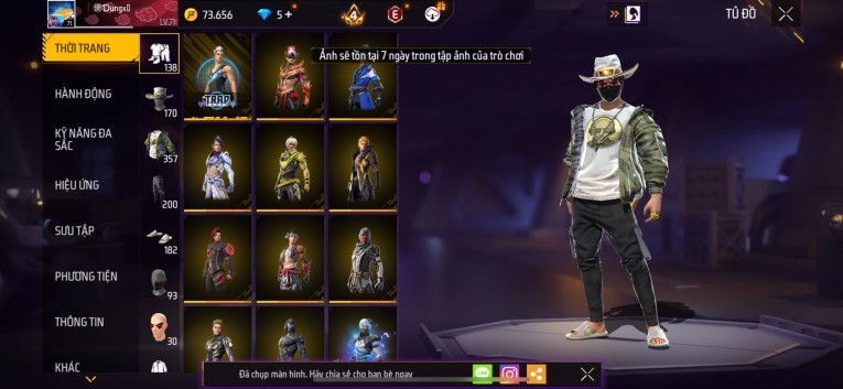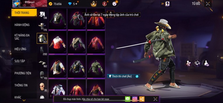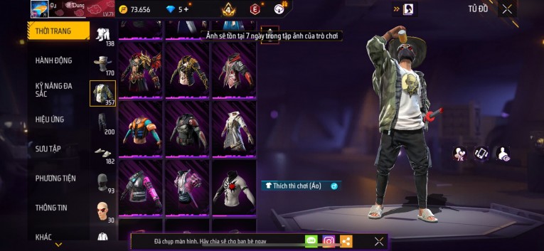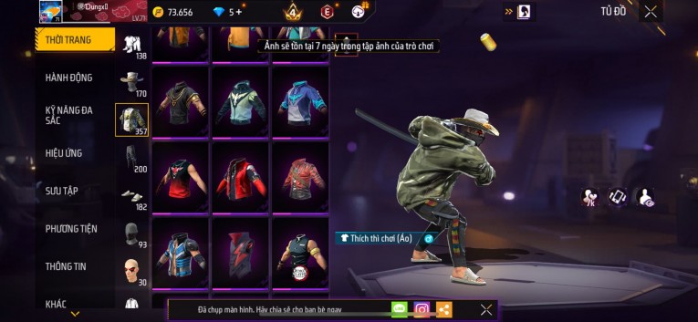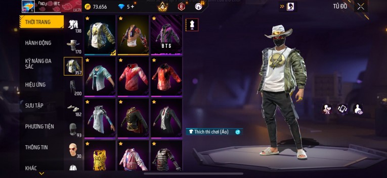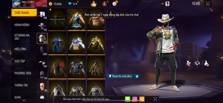 Acc chơi lâu, nhiều skin súng xịn, đầy đủ áo và phụ kiện nam. Đồ đủ dùng, đẹp mắt – vào chơi là chiến ngay! Phù hợp anh em thích skin đẹp, súng mạnh, acc ổn định.