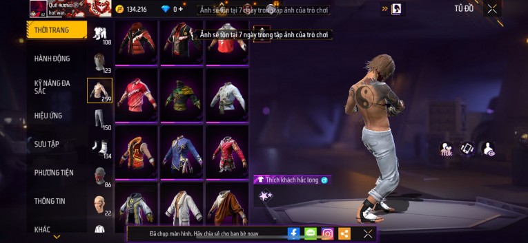 Acc chơi lâu, nhiều skin súng xịn, đầy đủ áo và phụ kiện nam. Đồ đủ dùng, đẹp mắt – vào chơi là chiến ngay! Phù hợp anh em thích skin đẹp, súng mạnh, acc ổn định.