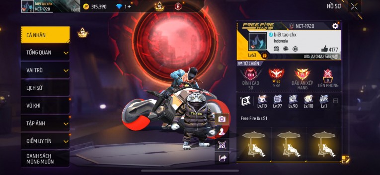 Acc chơi lâu, nhiều skin súng xịn, đầy đủ áo và phụ kiện nam. Đồ đủ dùng, đẹp mắt – vào chơi là chiến ngay! Phù hợp anh em thích skin đẹp, súng mạnh, acc ổn định.