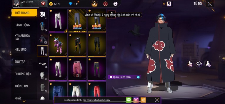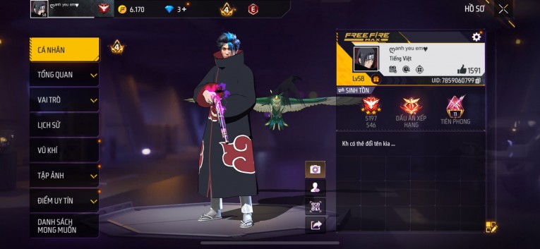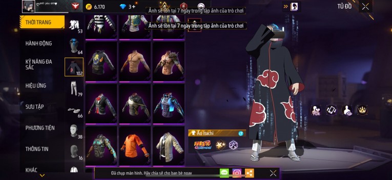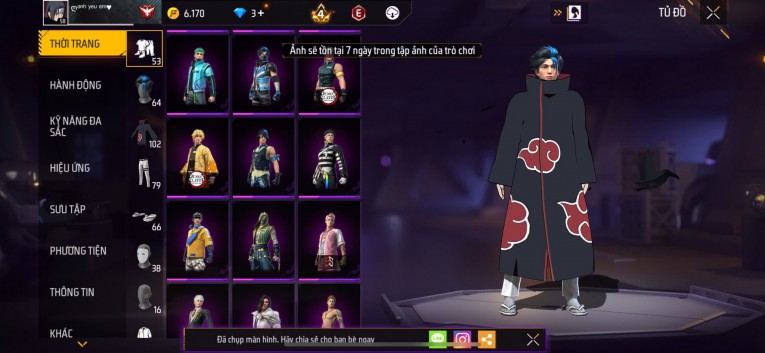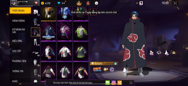 Acc chơi lâu, nhiều skin súng xịn, đầy đủ áo và phụ kiện nam. Đồ đủ dùng, đẹp mắt – vào chơi là chiến ngay! Phù hợp anh em thích skin đẹp, súng mạnh, acc ổn định.