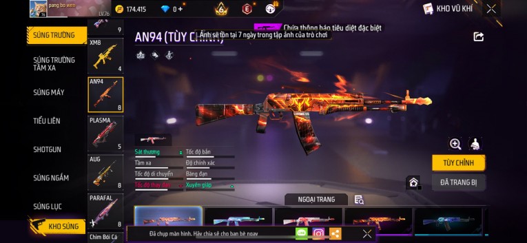 Acc chơi lâu, nhiều skin súng xịn, đầy đủ áo và phụ kiện nam. Đồ đủ dùng, đẹp mắt – vào chơi là chiến ngay! Phù hợp anh em thích skin đẹp, súng mạnh, acc ổn định.