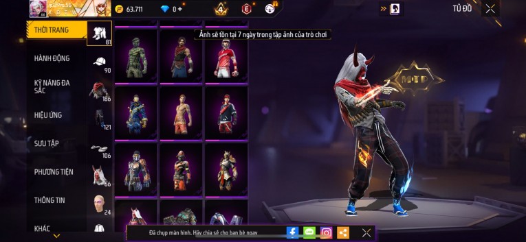 Acc chơi lâu, nhiều skin súng xịn, đầy đủ áo và phụ kiện nam. Đồ đủ dùng, đẹp mắt – vào chơi là chiến ngay! Phù hợp anh em thích skin đẹp, súng mạnh, acc ổn định.