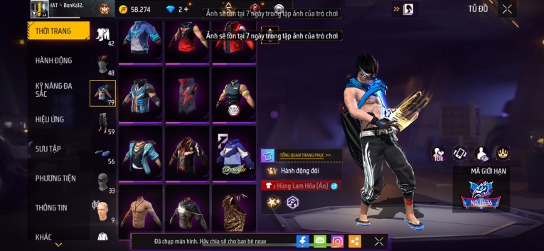 Acc chơi lâu, nhiều skin súng xịn, đầy đủ áo và phụ kiện nam. Đồ đủ dùng, đẹp mắt – vào chơi là chiến ngay! Phù hợp anh em thích skin đẹp, súng mạnh, acc ổn định.