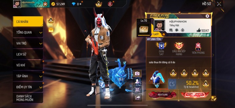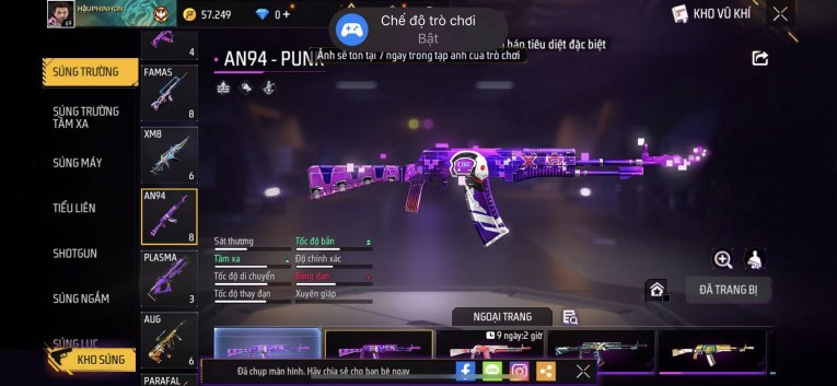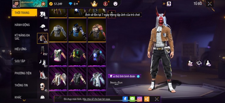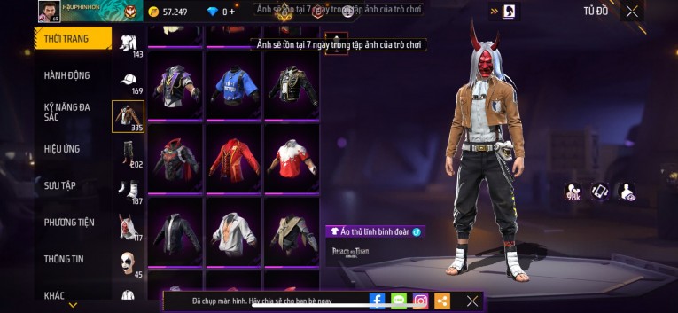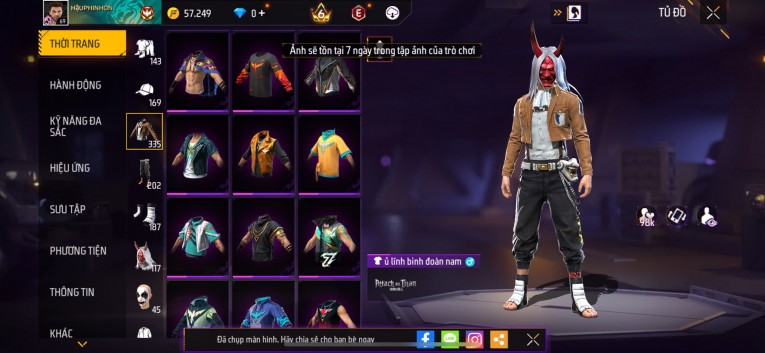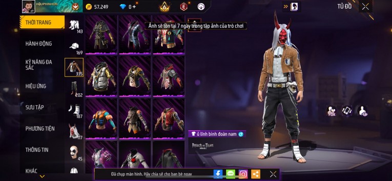 Acc chơi lâu, nhiều skin súng xịn, đầy đủ áo và phụ kiện nam. Đồ đủ dùng, đẹp mắt – vào chơi là chiến ngay! Phù hợp anh em thích skin đẹp, súng mạnh, acc ổn định.