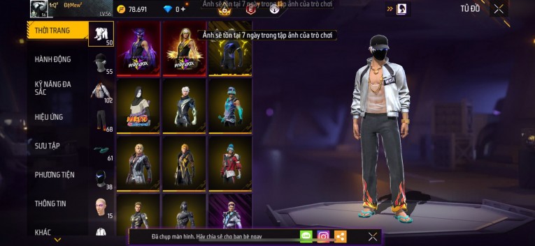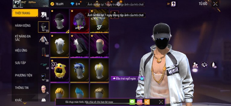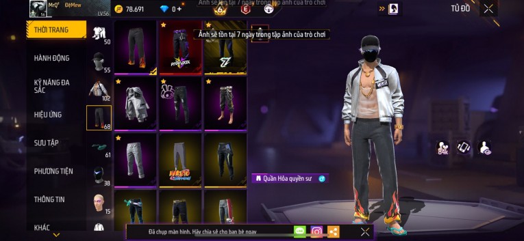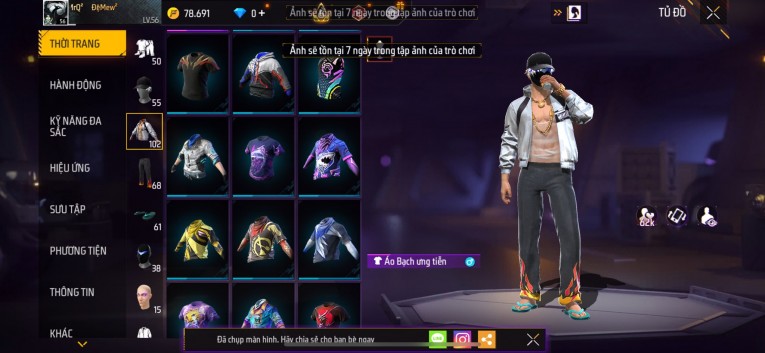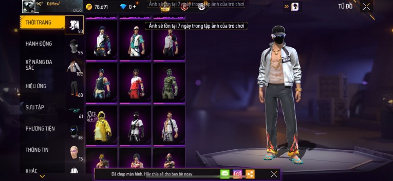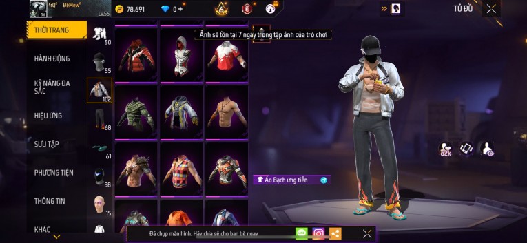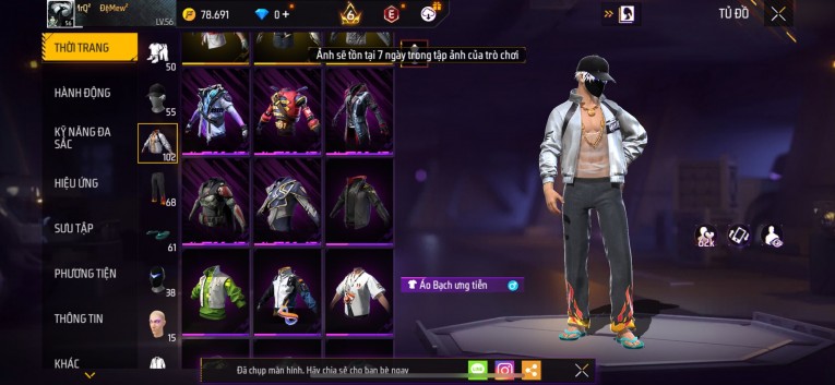 Acc chơi lâu, nhiều skin súng xịn, đầy đủ áo và phụ kiện nam. Đồ đủ dùng, đẹp mắt – vào chơi là chiến ngay! Phù hợp anh em thích skin đẹp, súng mạnh, acc ổn định.