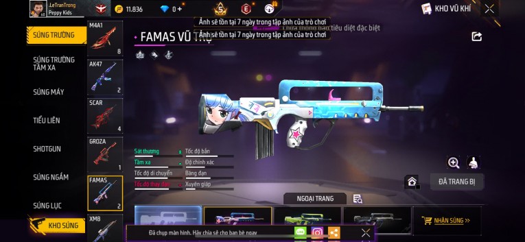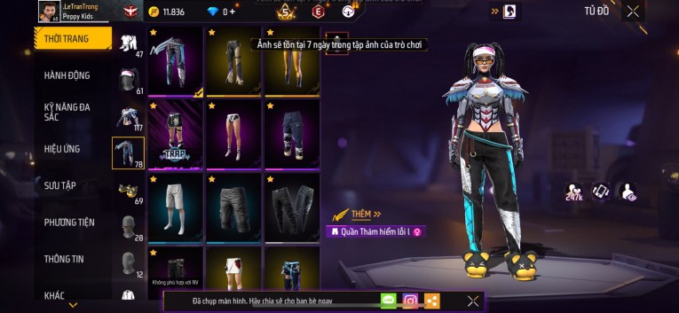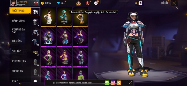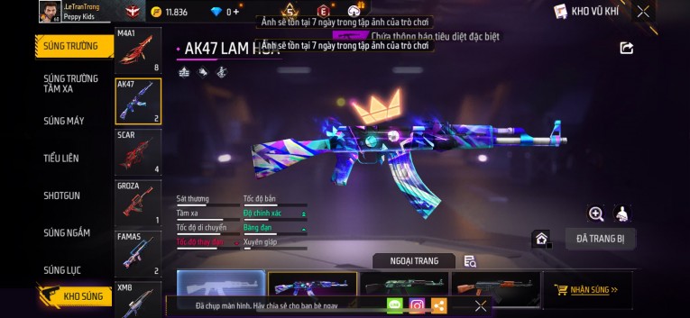 Acc chơi lâu, nhiều skin súng xịn, đầy đủ áo và phụ kiện nam. Đồ đủ dùng, đẹp mắt – vào chơi là chiến ngay! Phù hợp anh em thích skin đẹp, súng mạnh, acc ổn định.