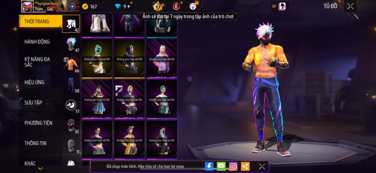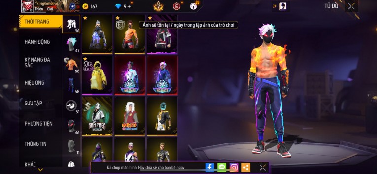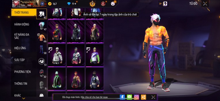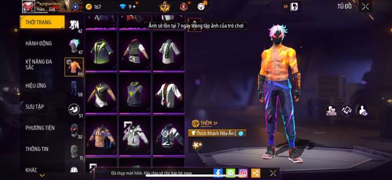 Acc chơi lâu, nhiều skin súng xịn, đầy đủ áo và phụ kiện nam. Đồ đủ dùng, đẹp mắt – vào chơi là chiến ngay! Phù hợp anh em thích skin đẹp, súng mạnh, acc ổn định.