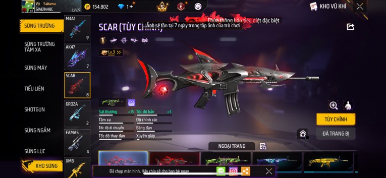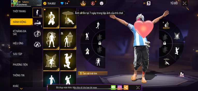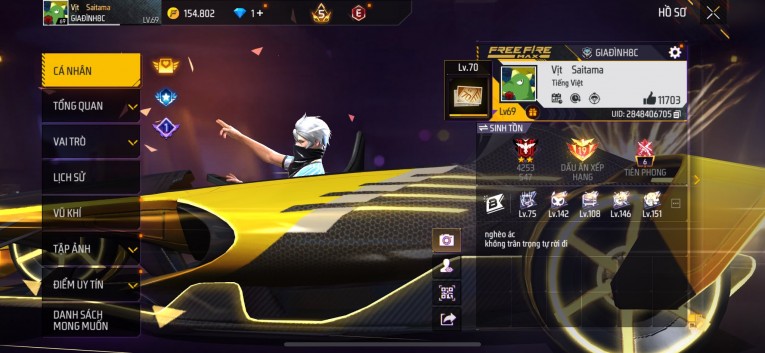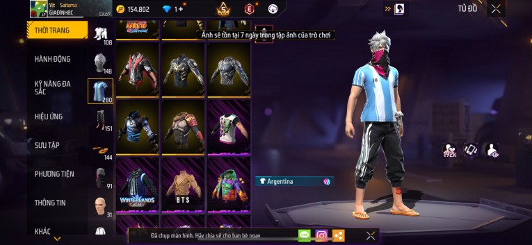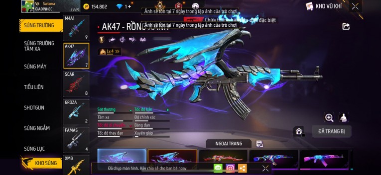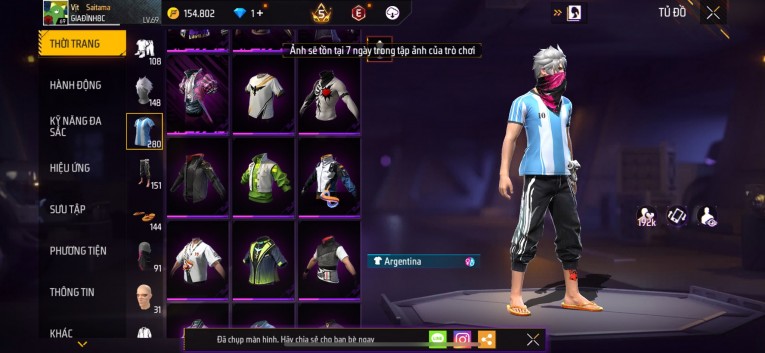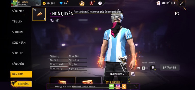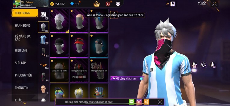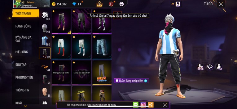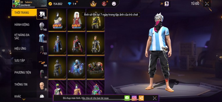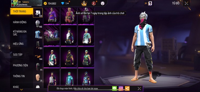 Acc chơi lâu, nhiều skin súng xịn, đầy đủ áo và phụ kiện nam. Đồ đủ dùng, đẹp mắt – vào chơi là chiến ngay! Phù hợp anh em thích skin đẹp, súng mạnh, acc ổn định.