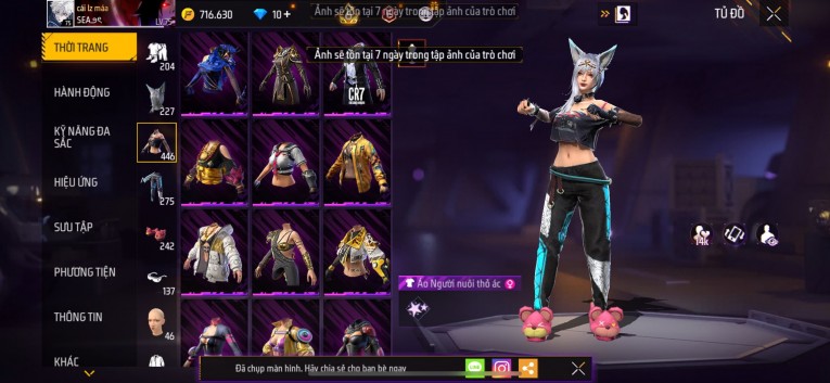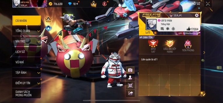 Acc chơi lâu, nhiều skin súng xịn, đầy đủ áo và phụ kiện nam. Đồ đủ dùng, đẹp mắt – vào chơi là chiến ngay! Phù hợp anh em thích skin đẹp, súng mạnh, acc ổn định.