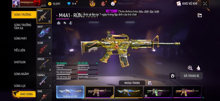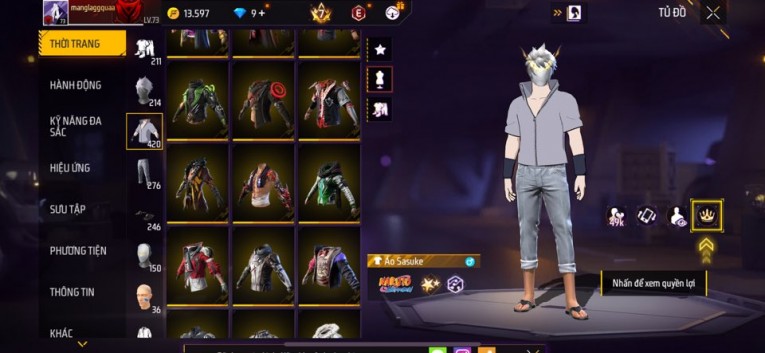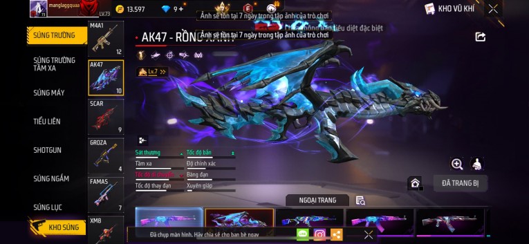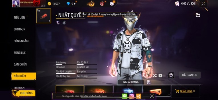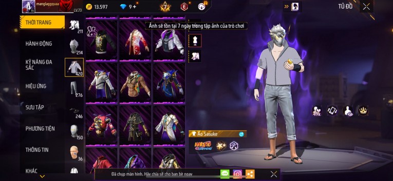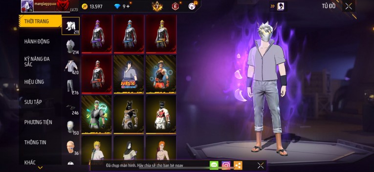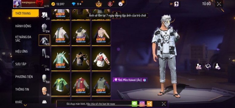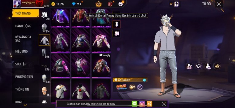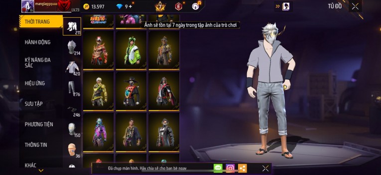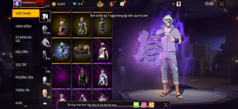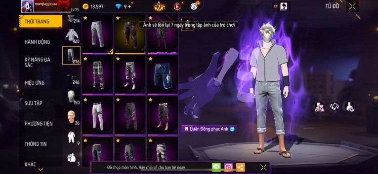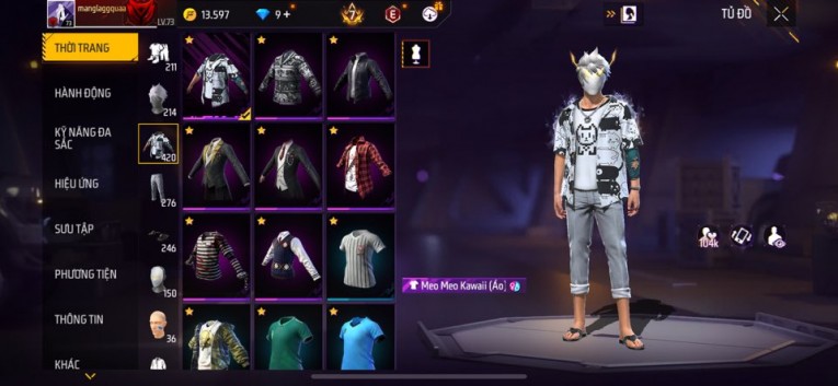 Acc chơi lâu, nhiều skin súng xịn, đầy đủ áo và phụ kiện nam. Đồ đủ dùng, đẹp mắt – vào chơi là chiến ngay! Phù hợp anh em thích skin đẹp, súng mạnh, acc ổn định.