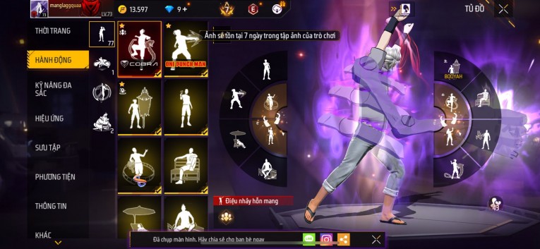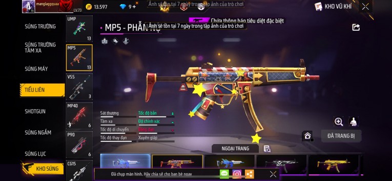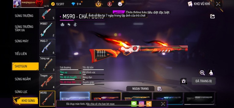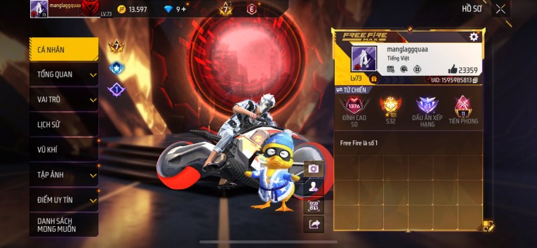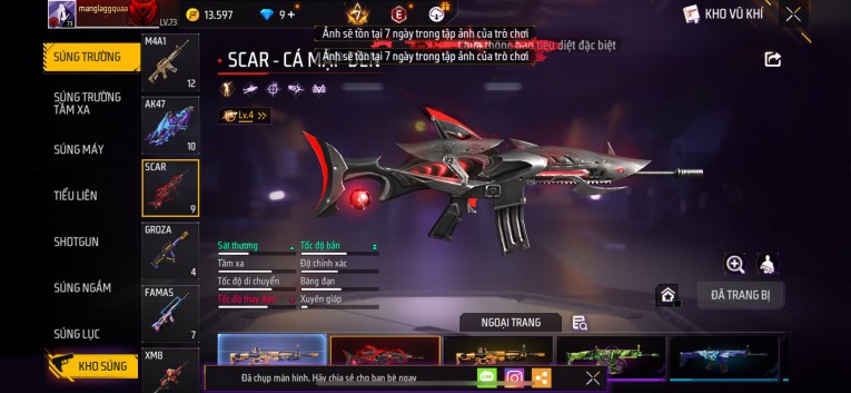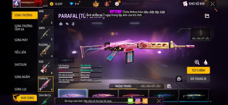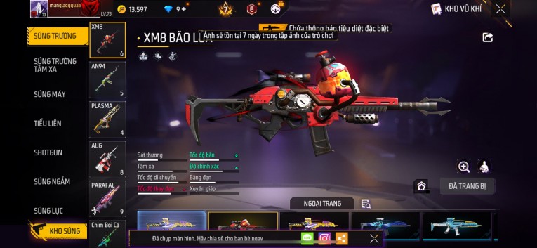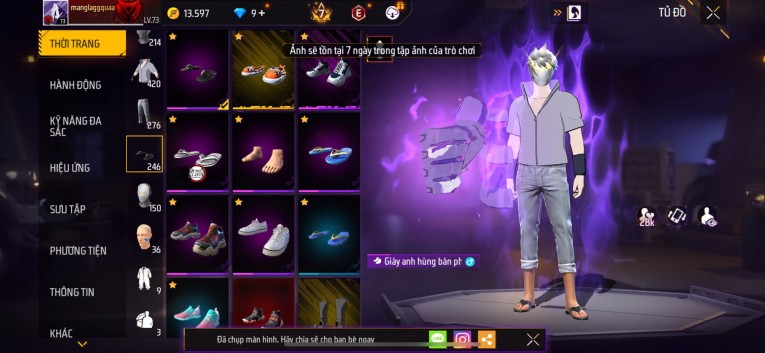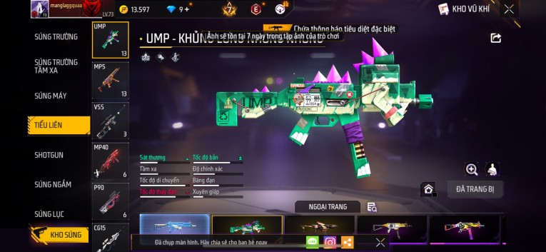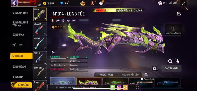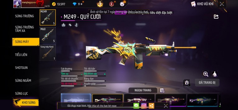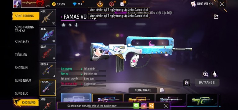 Acc chơi lâu, nhiều skin súng xịn, đầy đủ áo và phụ kiện nam. Đồ đủ dùng, đẹp mắt – vào chơi là chiến ngay! Phù hợp anh em thích skin đẹp, súng mạnh, acc ổn định.