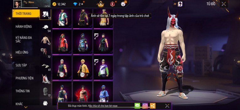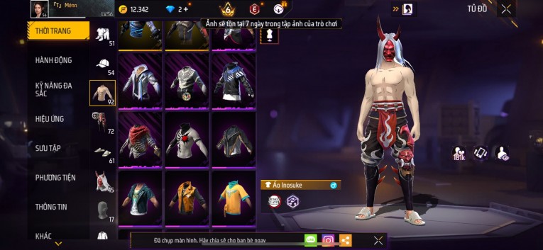 Acc chơi lâu, nhiều skin súng xịn, đầy đủ áo và phụ kiện nam. Đồ đủ dùng, đẹp mắt – vào chơi là chiến ngay! Phù hợp anh em thích skin đẹp, súng mạnh, acc ổn định.