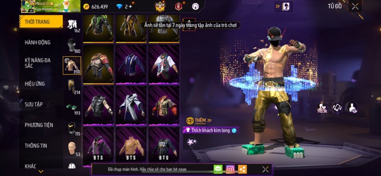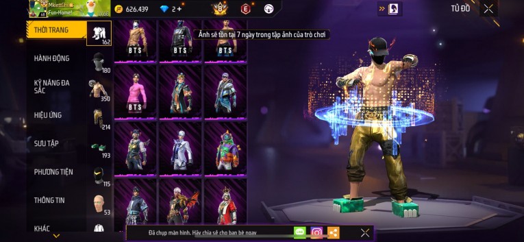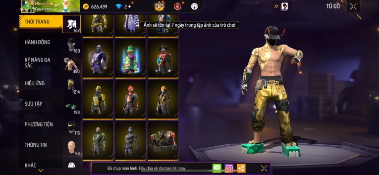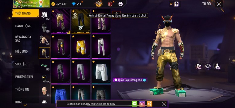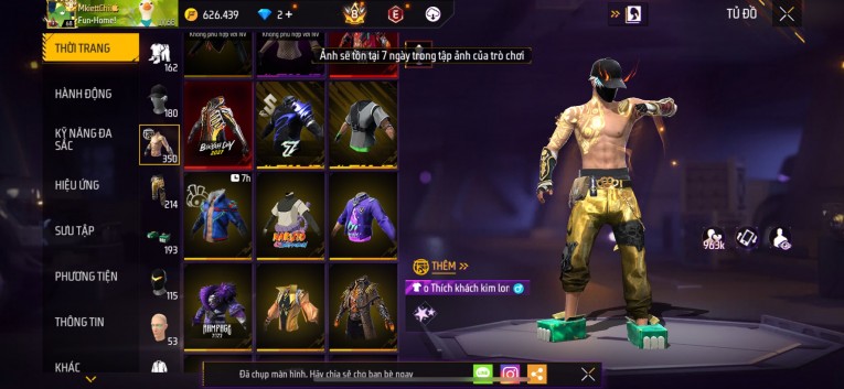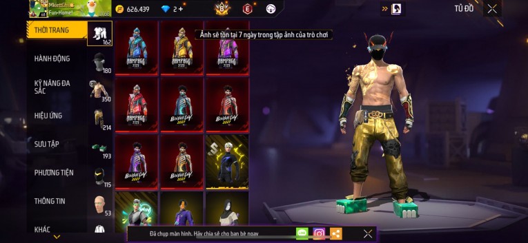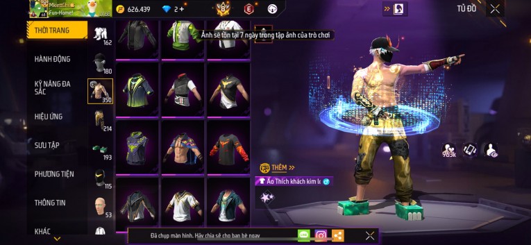 Acc chơi lâu, nhiều skin súng xịn, đầy đủ áo và phụ kiện nam. Đồ đủ dùng, đẹp mắt – vào chơi là chiến ngay! Phù hợp anh em thích skin đẹp, súng mạnh, acc ổn định.