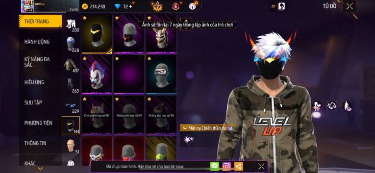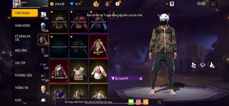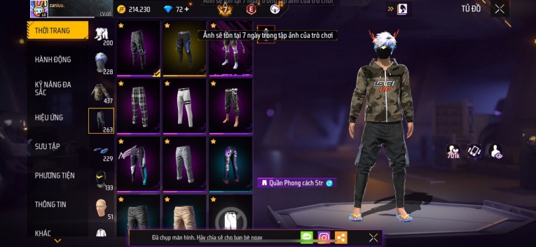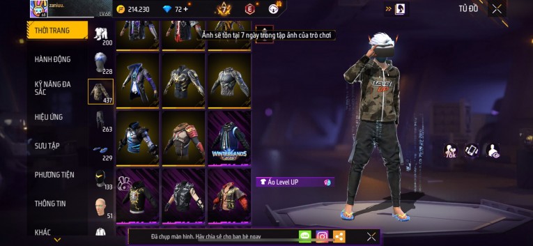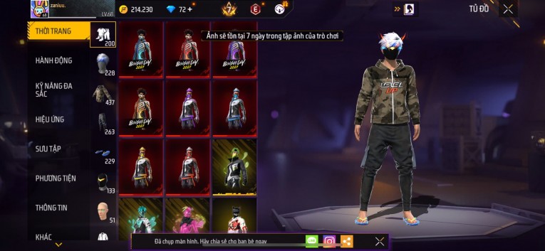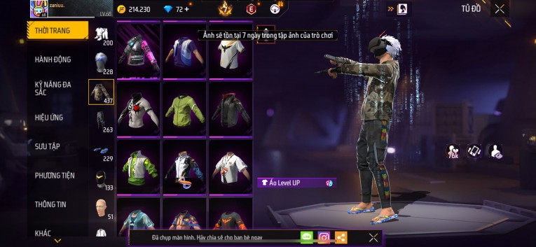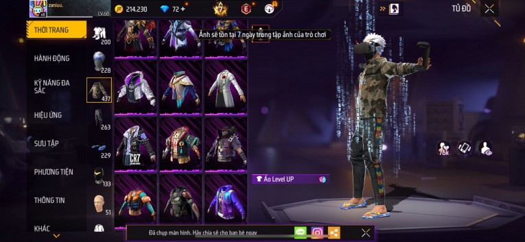 Acc chơi lâu, nhiều skin súng xịn, đầy đủ áo và phụ kiện nam. Đồ đủ dùng, đẹp mắt – vào chơi là chiến ngay! Phù hợp anh em thích skin đẹp, súng mạnh, acc ổn định.