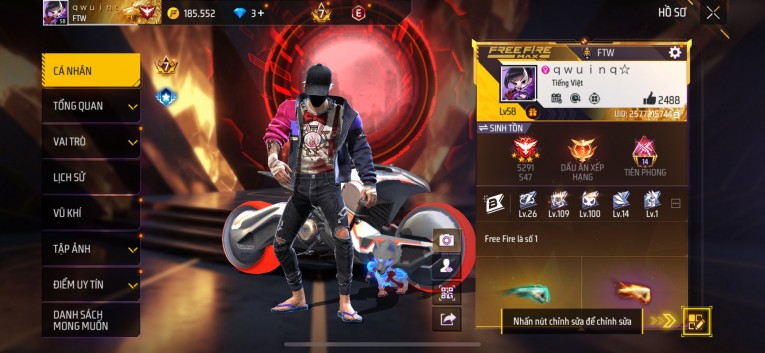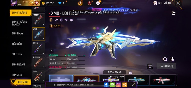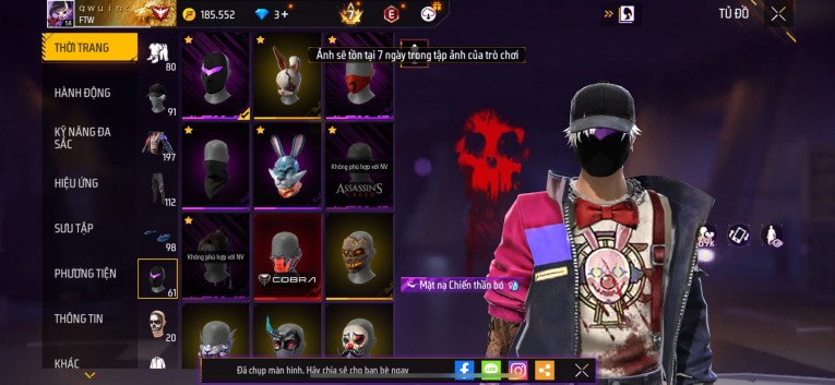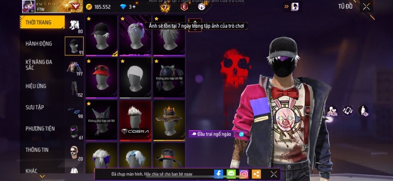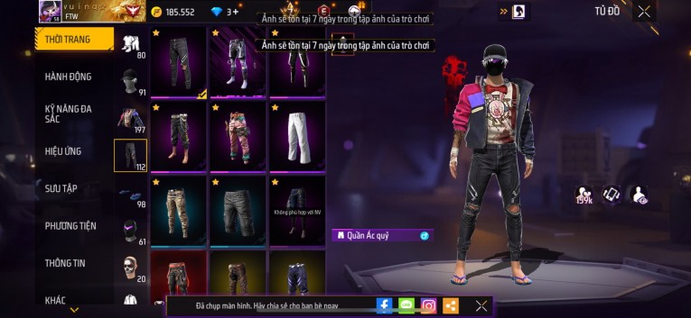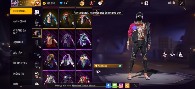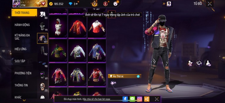 Acc chơi lâu, nhiều skin súng xịn, đầy đủ áo và phụ kiện nam. Đồ đủ dùng, đẹp mắt – vào chơi là chiến ngay! Phù hợp anh em thích skin đẹp, súng mạnh, acc ổn định.