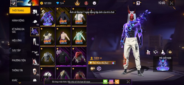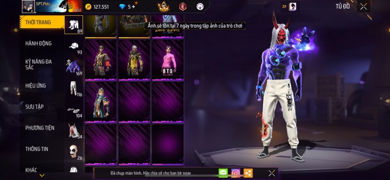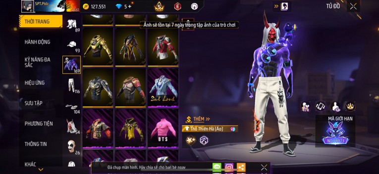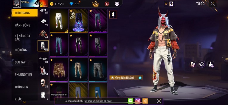 Acc chơi lâu, nhiều skin súng xịn, đầy đủ áo và phụ kiện nam. Đồ đủ dùng, đẹp mắt – vào chơi là chiến ngay!
