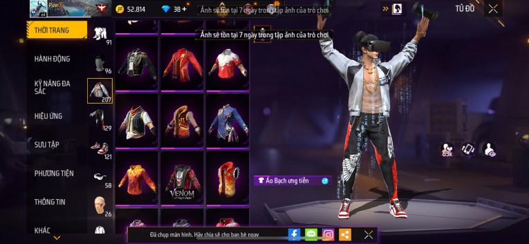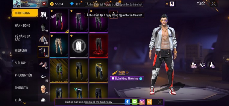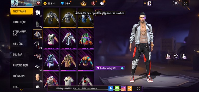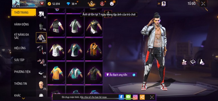 Acc chơi lâu, nhiều skin súng xịn, đầy đủ áo và phụ kiện nam. Đồ đủ dùng, đẹp mắt – vào chơi là chiến ngay! Phù hợp anh em thích skin đẹp, súng mạnh, acc ổn định.