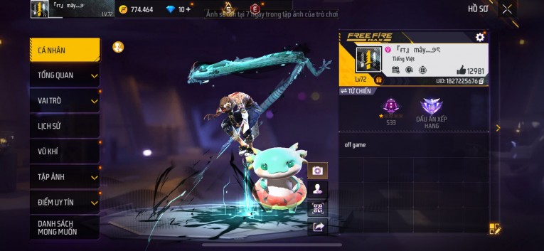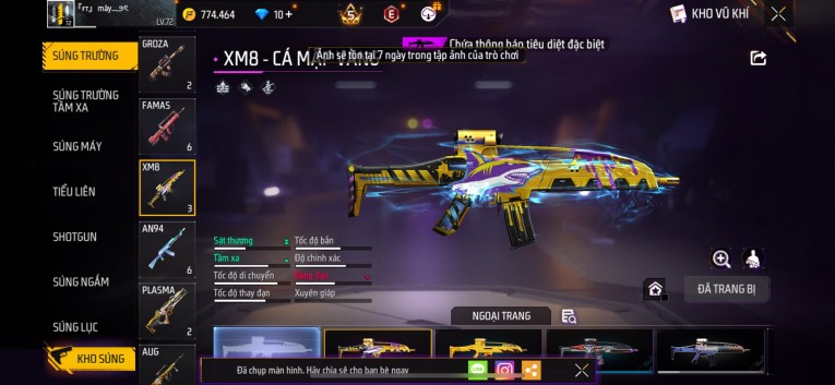 Acc chơi lâu, nhiều skin súng xịn, đầy đủ áo và phụ kiện nam. Đồ đủ dùng, đẹp mắt – vào chơi là chiến ngay! Phù hợp anh em thích skin đẹp, súng mạnh, acc ổn định.