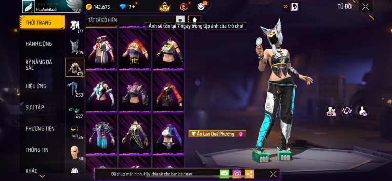 Acc chơi lâu, nhiều skin súng xịn, đầy đủ áo và phụ kiện nam. Đồ đủ dùng, đẹp mắt – vào chơi là chiến ngay! Phù hợp anh em thích skin đẹp, súng mạnh, acc ổn định.