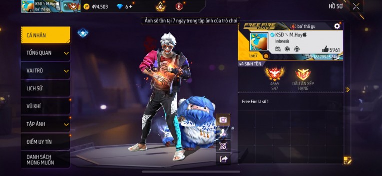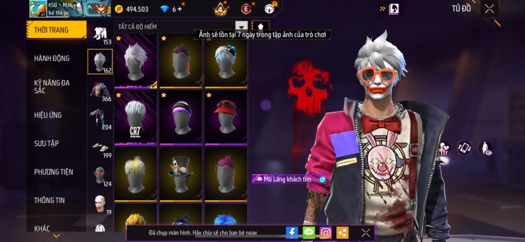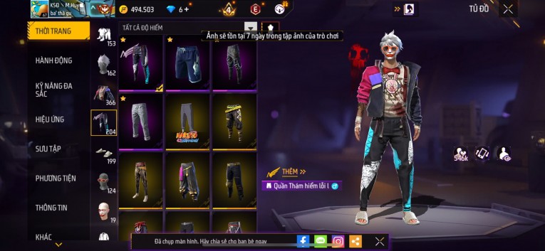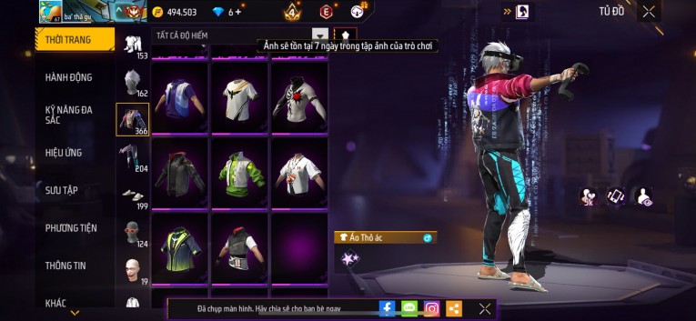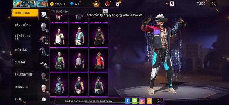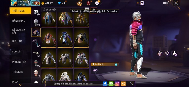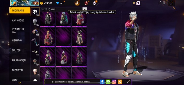 Acc chơi lâu, nhiều skin súng xịn, đầy đủ áo và phụ kiện nam. Đồ đủ dùng, đẹp mắt – vào chơi là chiến ngay! Phù hợp anh em thích skin đẹp, súng mạnh, acc ổn định.