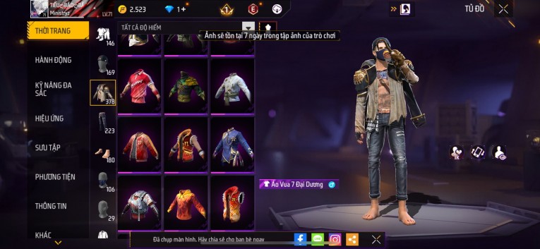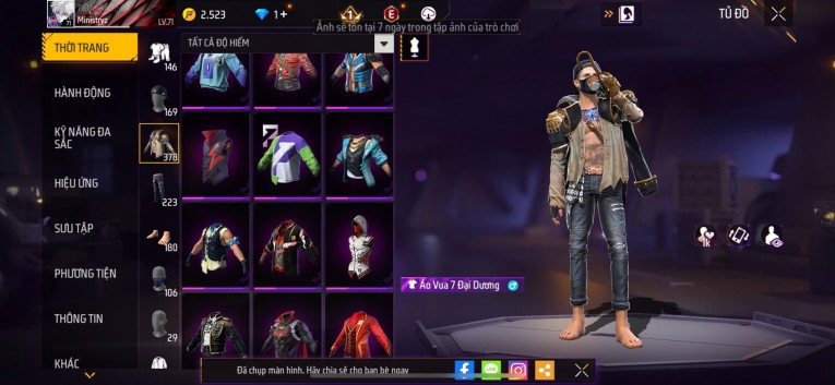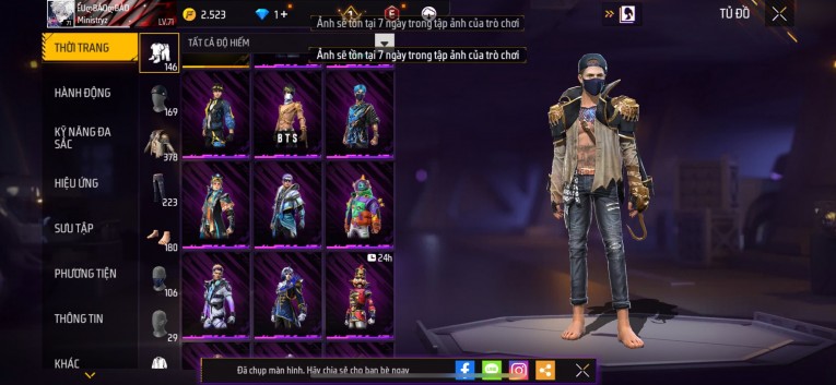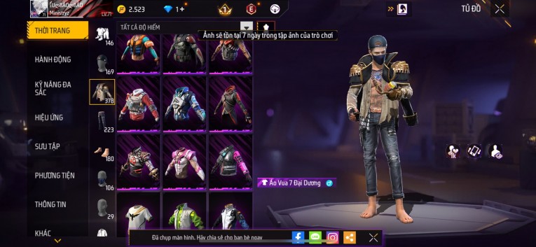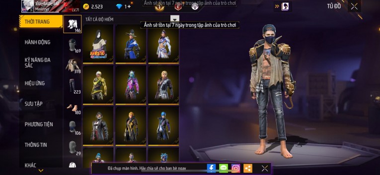 Acc chơi lâu, nhiều skin súng xịn, đầy đủ áo và phụ kiện nam. Đồ đủ dùng, đẹp mắt – vào chơi là chiến ngay!