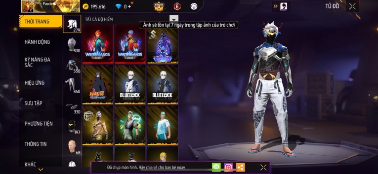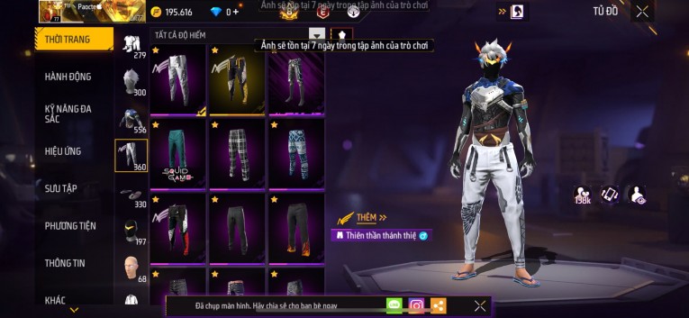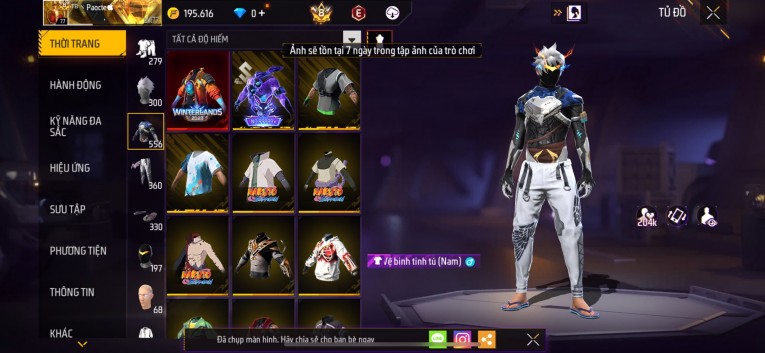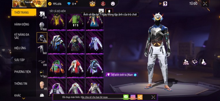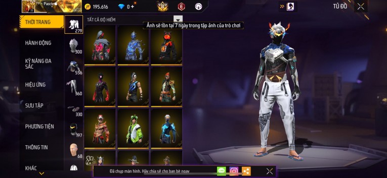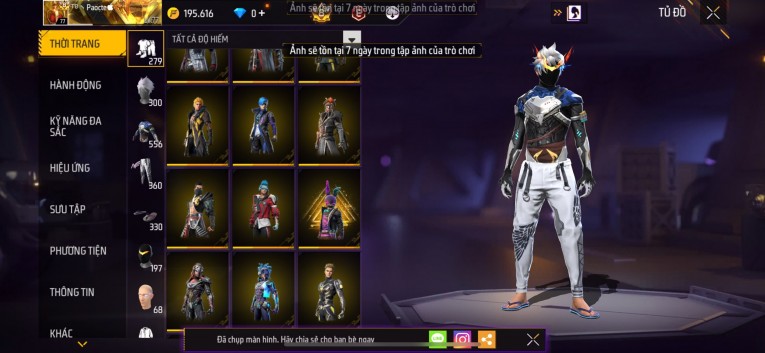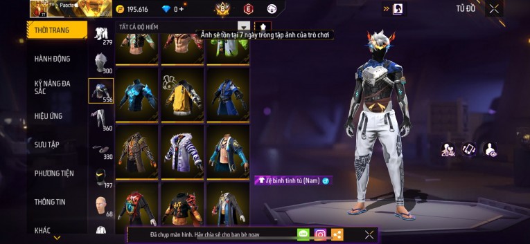 Acc chơi lâu, nhiều skin súng xịn, đầy đủ áo và phụ kiện nam. Đồ đủ dùng, đẹp mắt – vào chơi là chiến ngay!