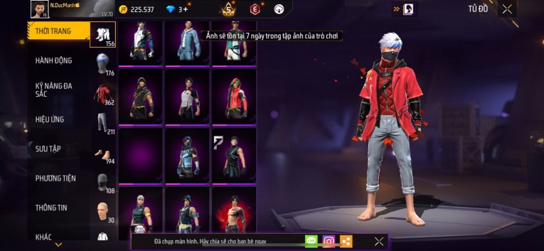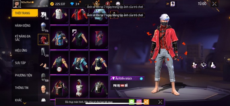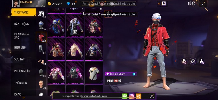 Acc chơi lâu, nhiều skin súng xịn, đầy đủ áo và phụ kiện nam. Đồ đủ dùng, đẹp mắt – vào chơi là chiến ngay!