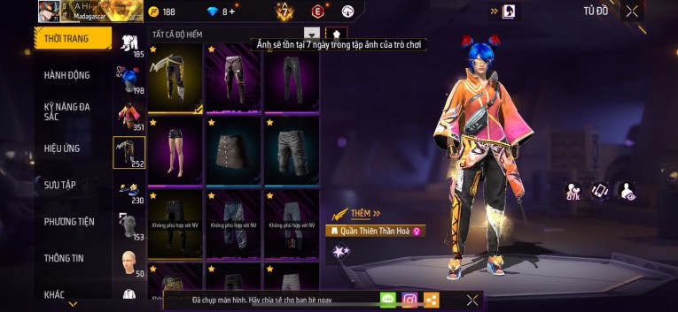 Acc chơi lâu, nhiều skin súng xịn, đầy đủ áo và phụ kiện nam. Đồ đủ dùng, đẹp mắt – vào chơi là chiến ngay!