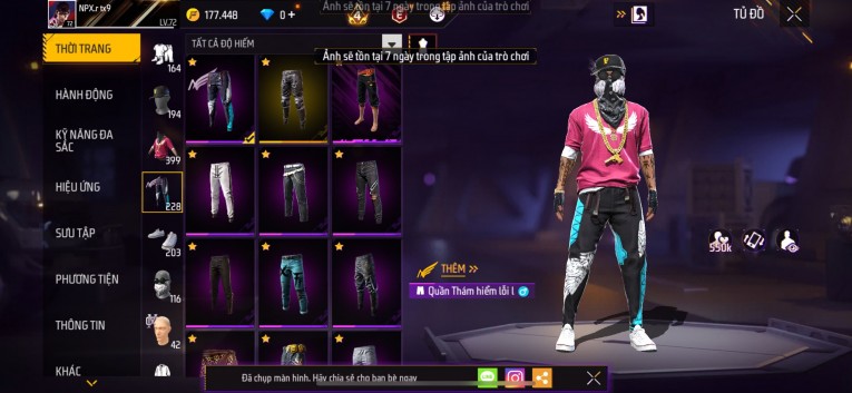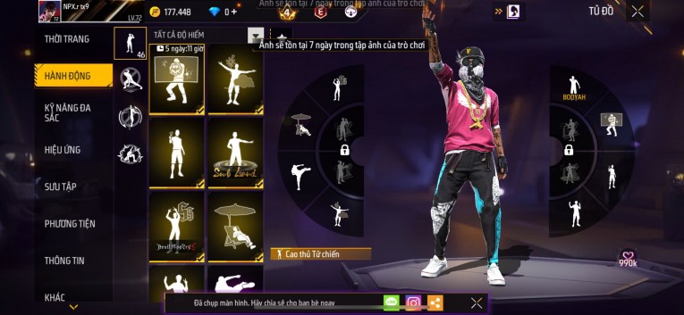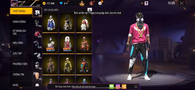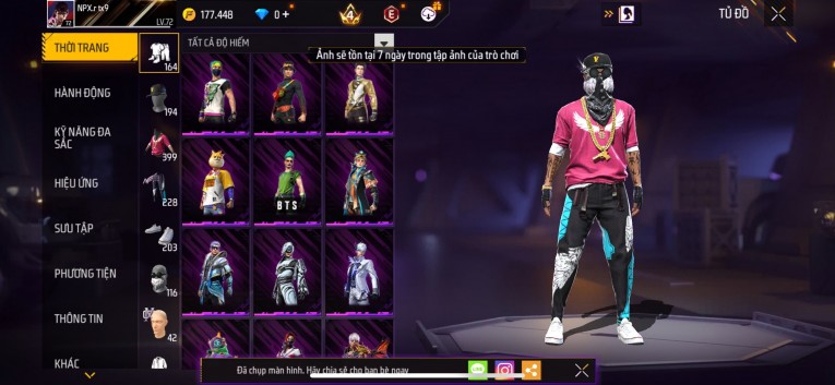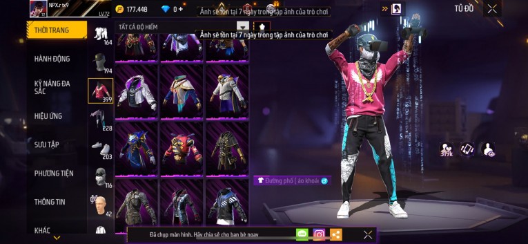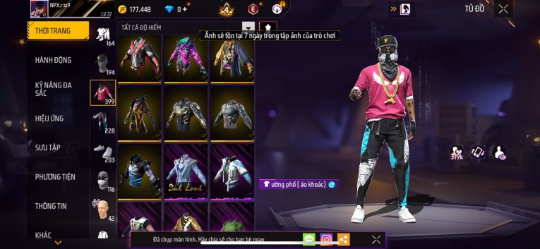 Acc chơi lâu, nhiều skin súng xịn, đầy đủ áo và phụ kiện nam. Đồ đủ dùng, đẹp mắt – vào chơi là chiến ngay!