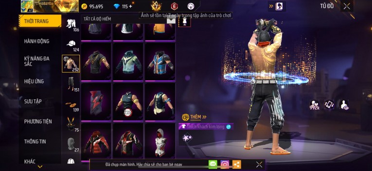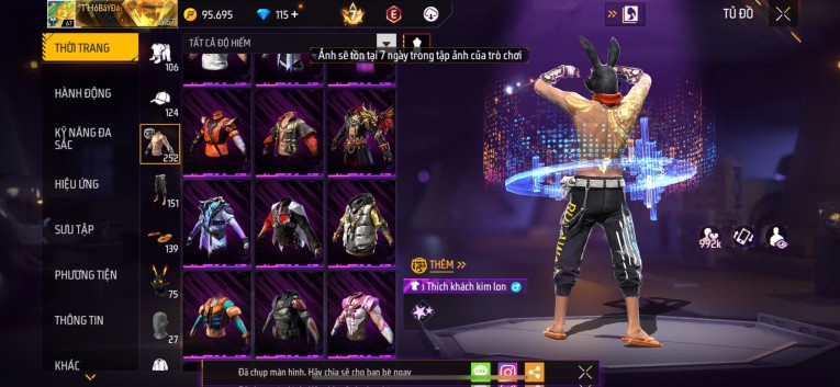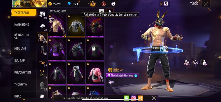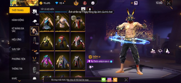Acc chơi lâu, nhiều skin súng xịn, đầy đủ áo và phụ kiện nam. Đồ đủ dùng, đẹp mắt – vào chơi là chiến ngay!