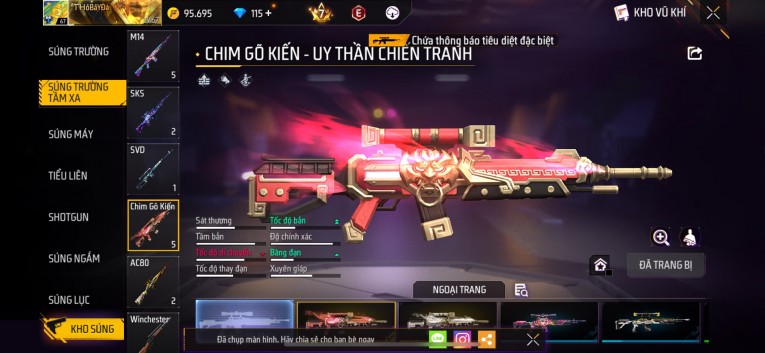 Phù hợp anh em thích skin đẹp, súng mạnh, acc ổn định.