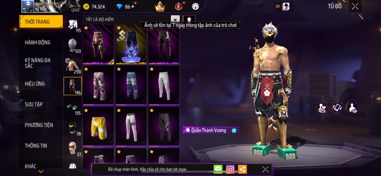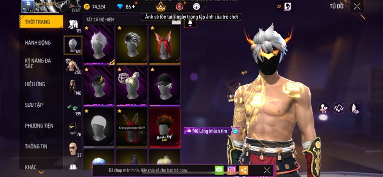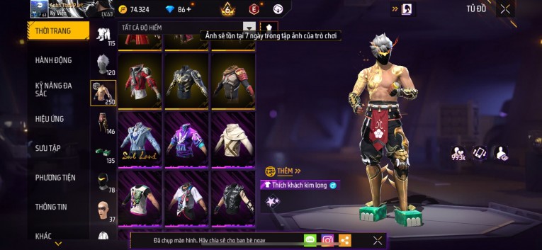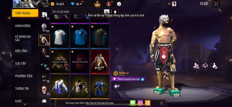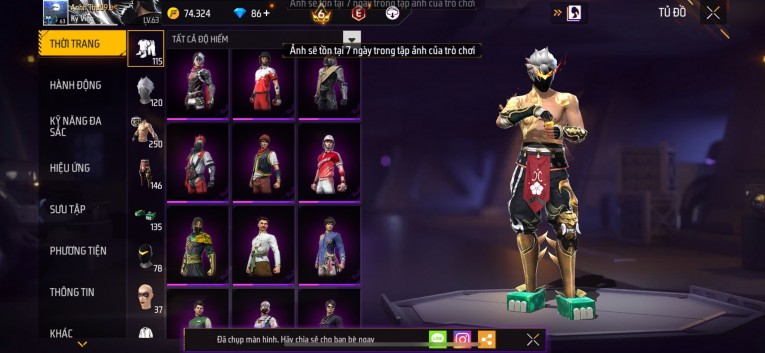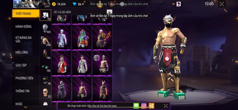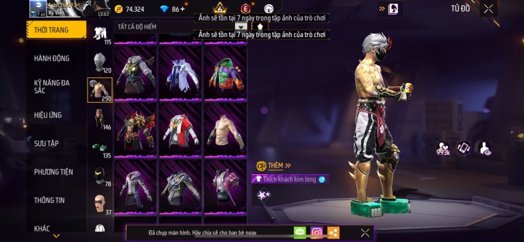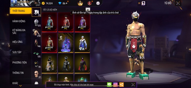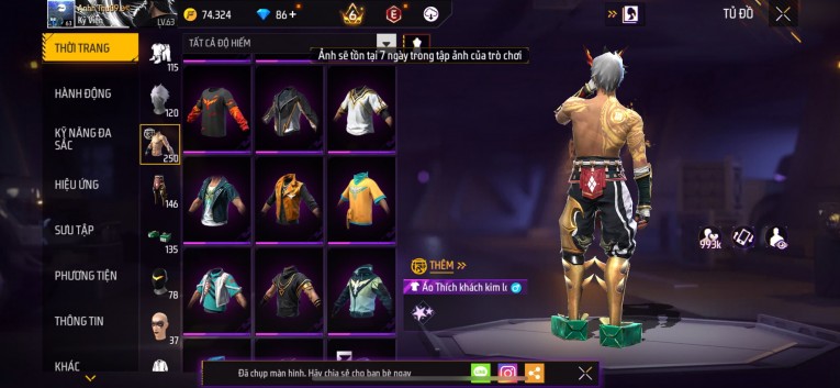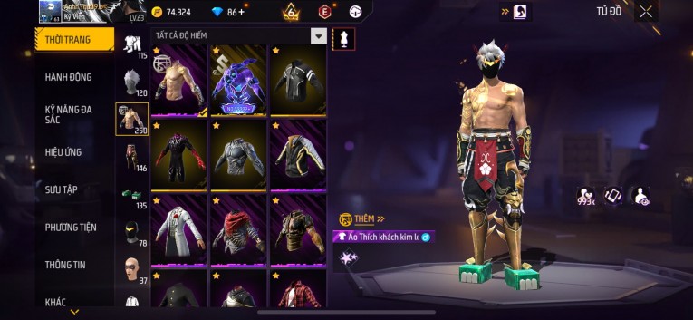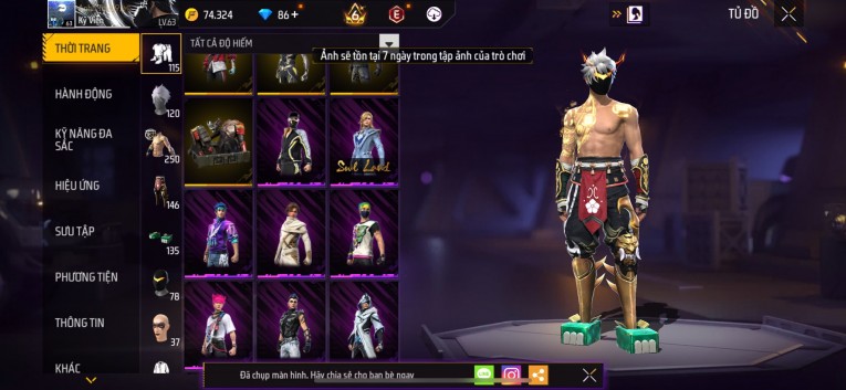 Acc chơi lâu, nhiều skin súng xịn, đầy đủ áo và phụ kiện nam. Đồ đủ dùng, đẹp mắt – vào chơi là chiến ngay!