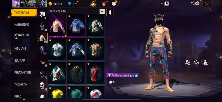 Acc chơi lâu, nhiều skin súng xịn, đầy đủ áo và phụ kiện nam. Đồ đủ dùng, đẹp mắt – vào chơi là chiến ngay!