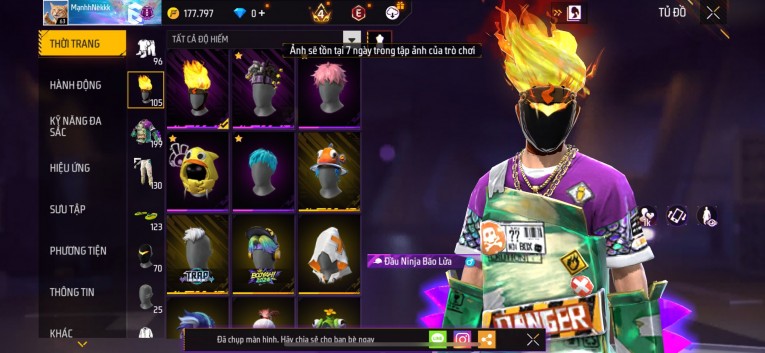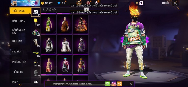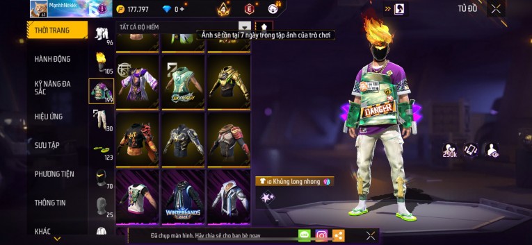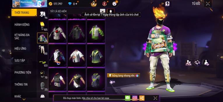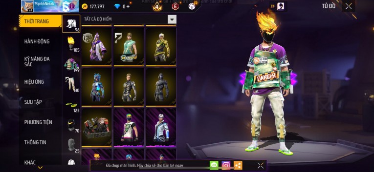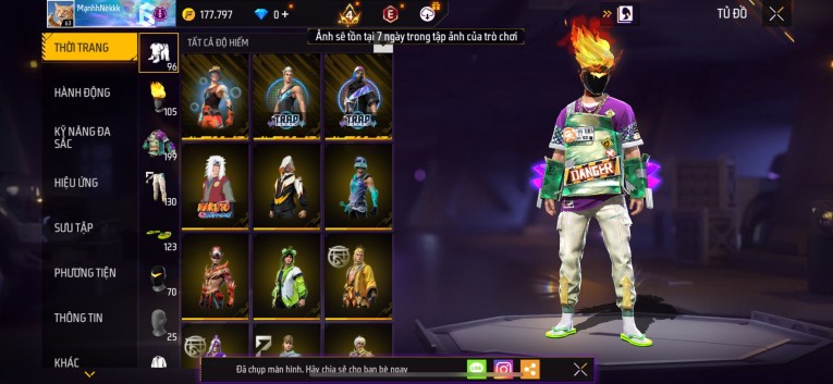 Acc chơi lâu, nhiều skin súng xịn, đầy đủ áo và phụ kiện nam. Đồ đủ dùng, đẹp mắt – vào chơi là chiến ngay!
