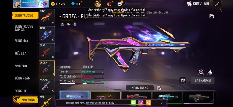 Phù hợp anh em thích skin đẹp, súng mạnh, acc ổn định.