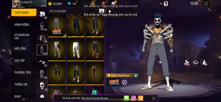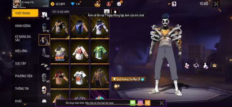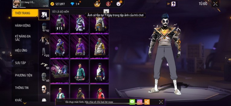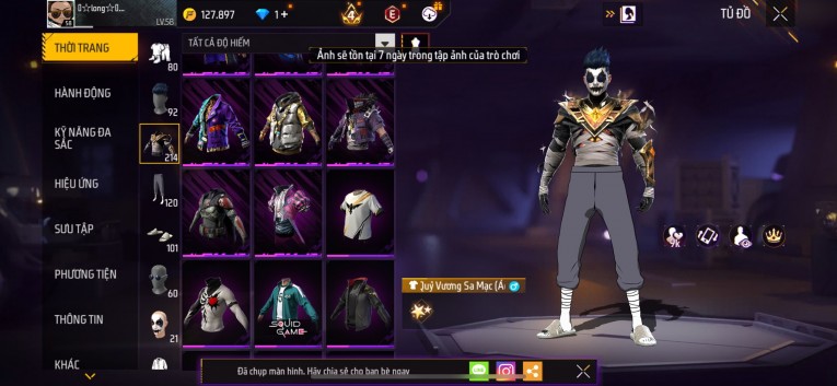 Acc chơi lâu, nhiều skin súng xịn, đầy đủ áo và phụ kiện nam. Đồ đủ dùng, đẹp mắt – vào chơi là chiến ngay!