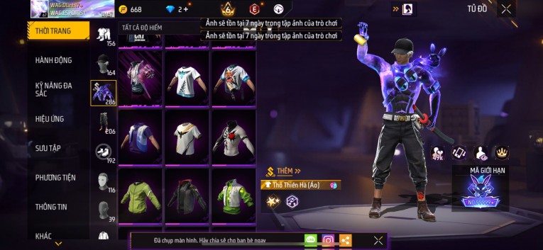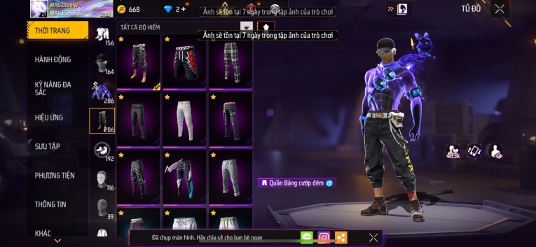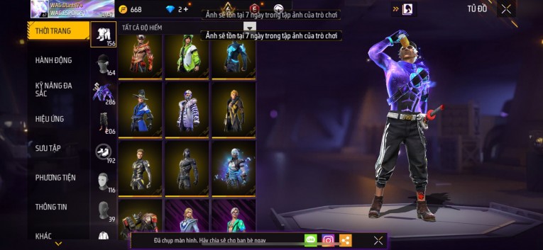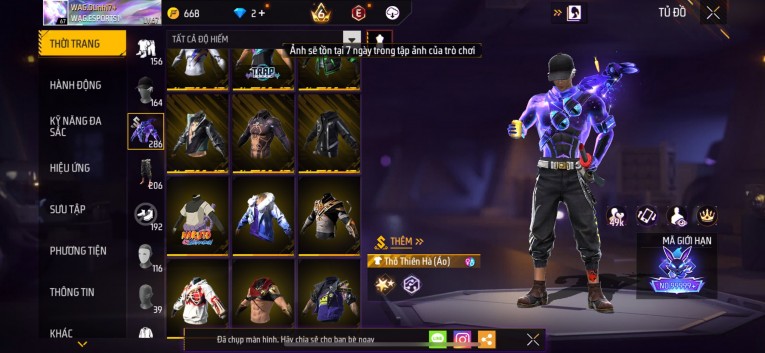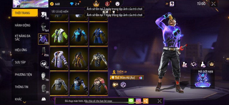 Acc chơi lâu, nhiều skin súng xịn, đầy đủ áo và phụ kiện nam. Đồ đủ dùng, đẹp mắt – vào chơi là chiến ngay!