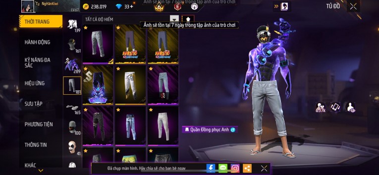 Acc chơi lâu, nhiều skin súng xịn, đầy đủ áo và phụ kiện nam. Đồ đủ dùng, đẹp mắt – vào chơi là chiến ngay!