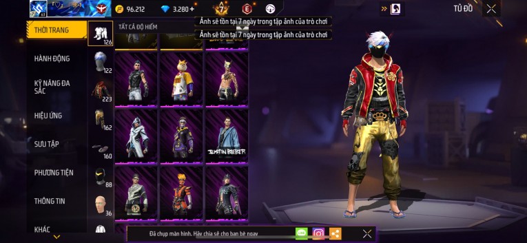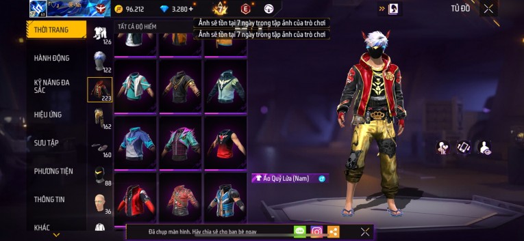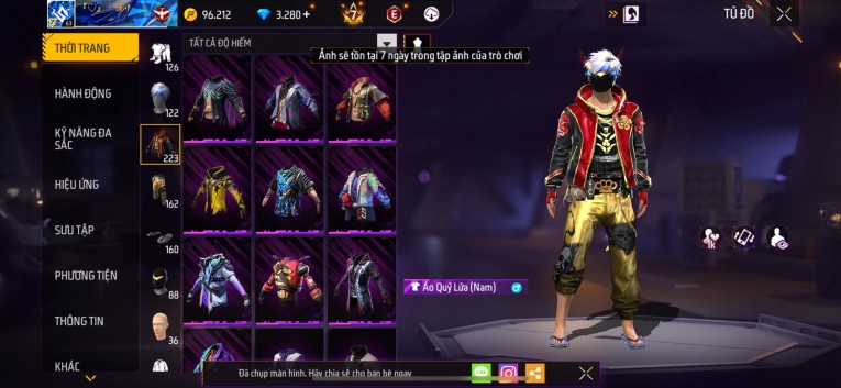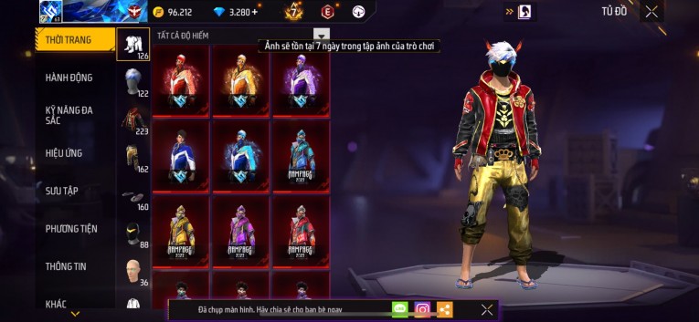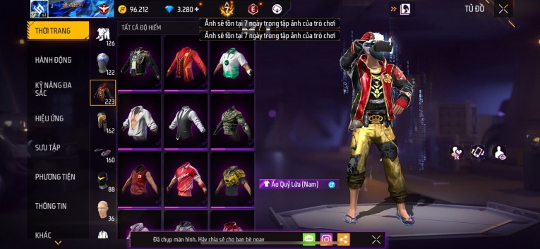 Acc chơi lâu, nhiều skin súng xịn, đầy đủ áo và phụ kiện nam. Đồ đủ dùng, đẹp mắt – vào chơi là chiến ngay!