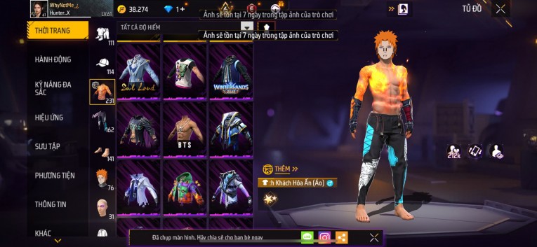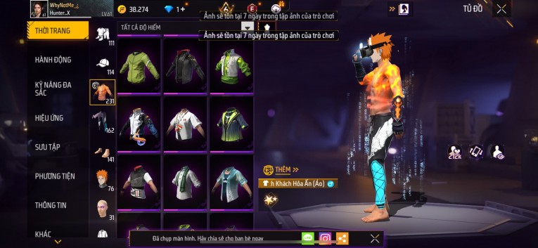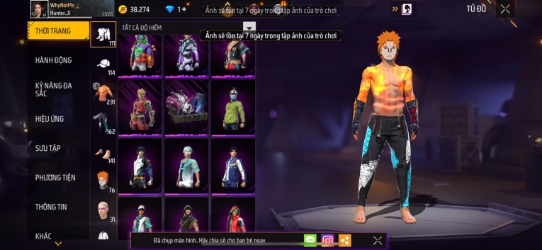 Acc chơi lâu, nhiều skin súng xịn, đầy đủ áo và phụ kiện nam. Đồ đủ dùng, đẹp mắt – vào chơi là chiến ngay!