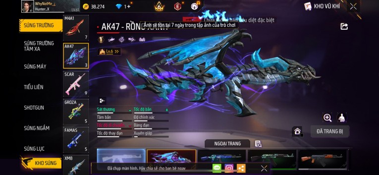 Phù hợp anh em thích skin đẹp, súng mạnh, acc ổn định.