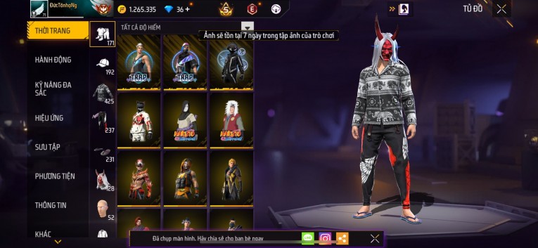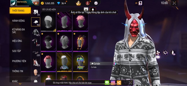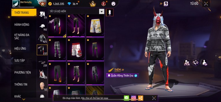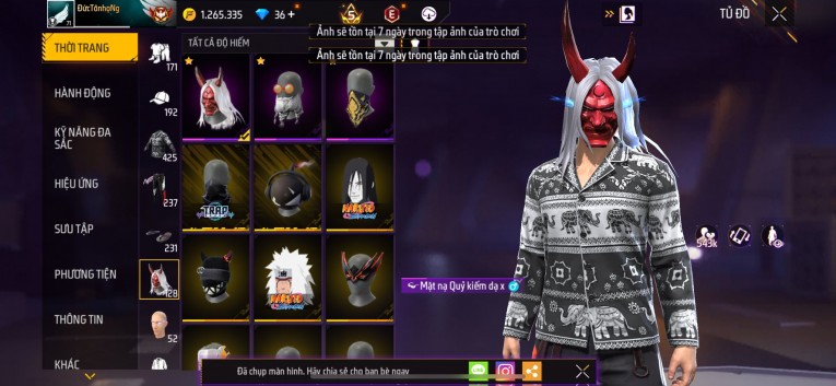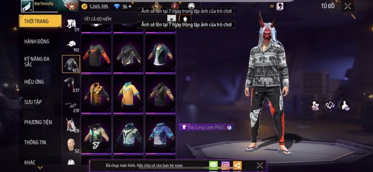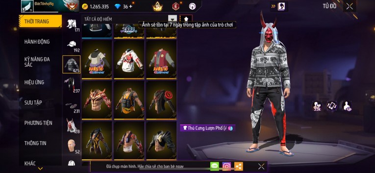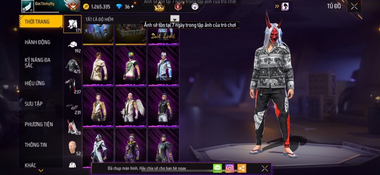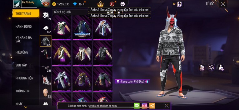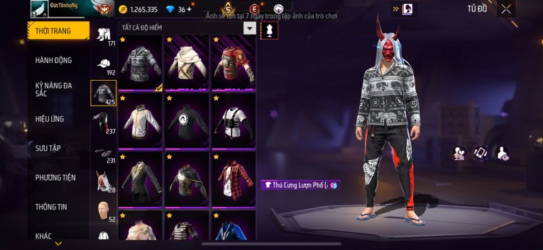 Acc chơi lâu, nhiều skin súng xịn, đầy đủ áo và phụ kiện nam. Đồ đủ dùng, đẹp mắt – vào chơi là chiến ngay!