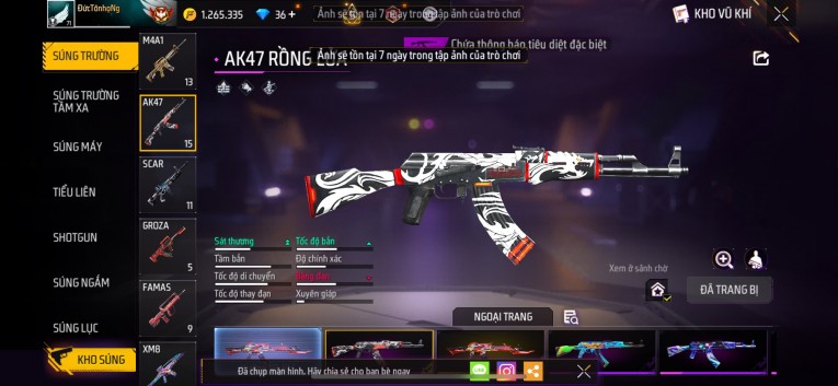 Phù hợp anh em thích skin đẹp, súng mạnh, acc ổn định.
