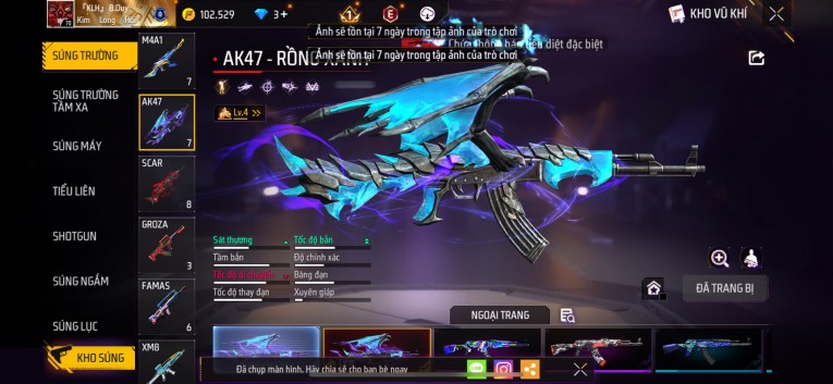 Phù hợp anh em thích skin đẹp, súng mạnh, acc ổn định.