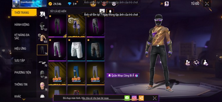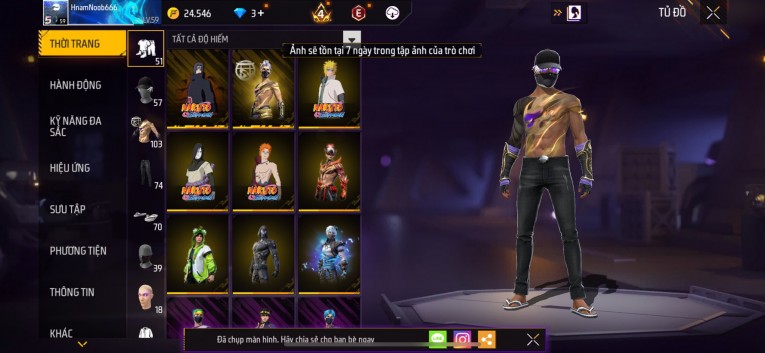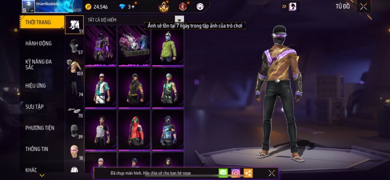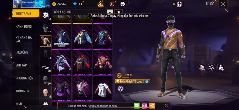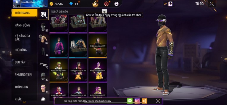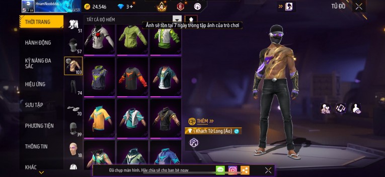 Acc chơi lâu, nhiều skin súng xịn, đầy đủ áo và phụ kiện nam. Đồ đủ dùng, đẹp mắt – vào chơi là chiến ngay!