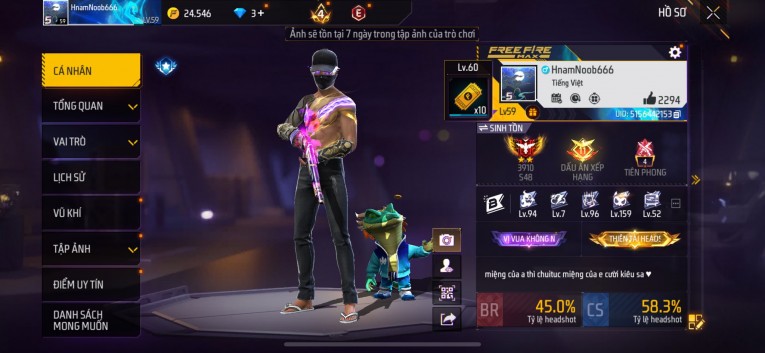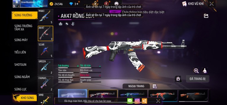 Phù hợp anh em thích skin đẹp, súng mạnh, acc ổn định.