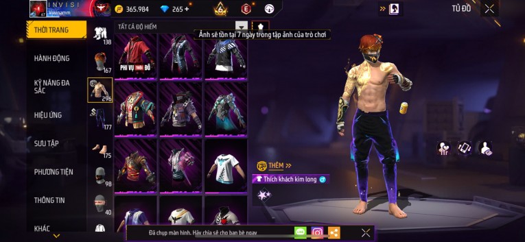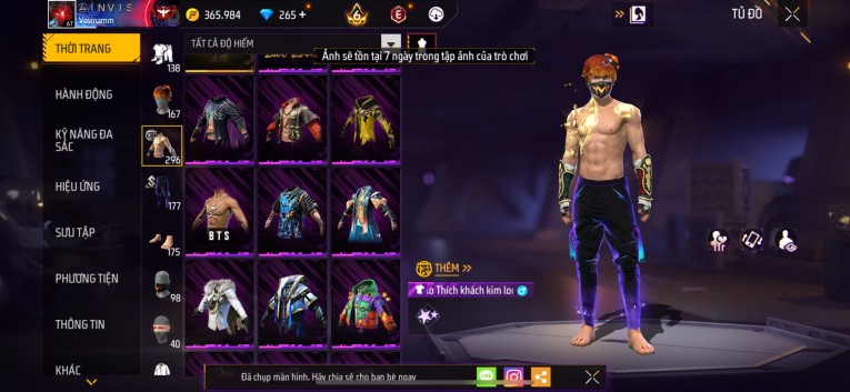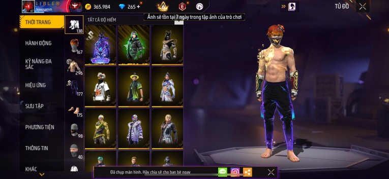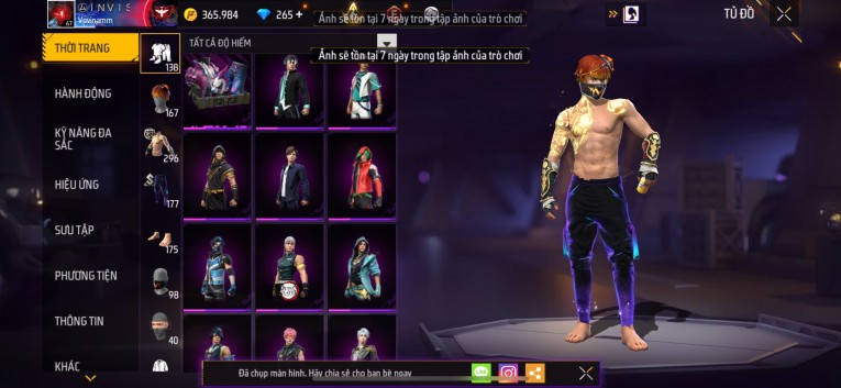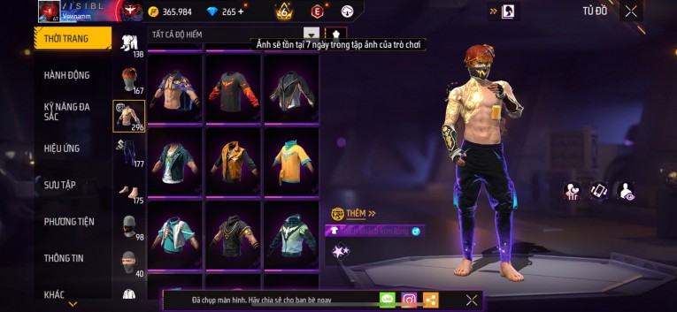 Acc chơi lâu, nhiều skin súng xịn, đầy đủ áo và phụ kiện nam. Đồ đủ dùng, đẹp mắt – vào chơi là chiến ngay!