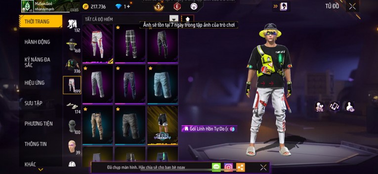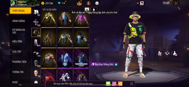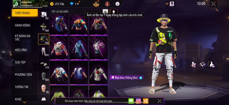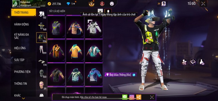 Acc chơi lâu, nhiều skin súng xịn, đầy đủ áo và phụ kiện nam. Đồ đủ dùng, đẹp mắt – vào chơi là chiến ngay! Phù hợp anh em thích skin đẹp, súng mạnh, acc ổn định.
