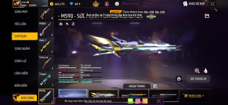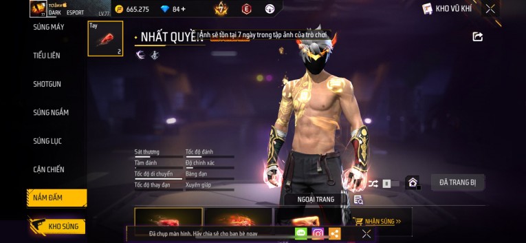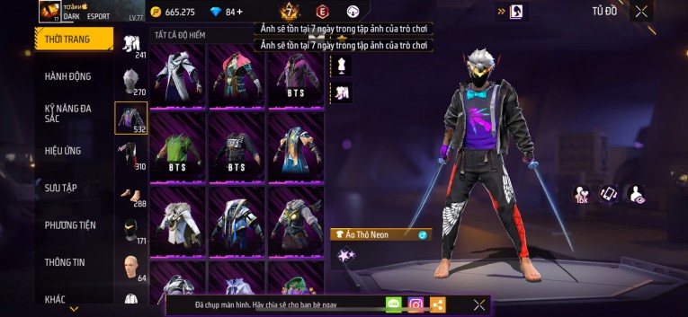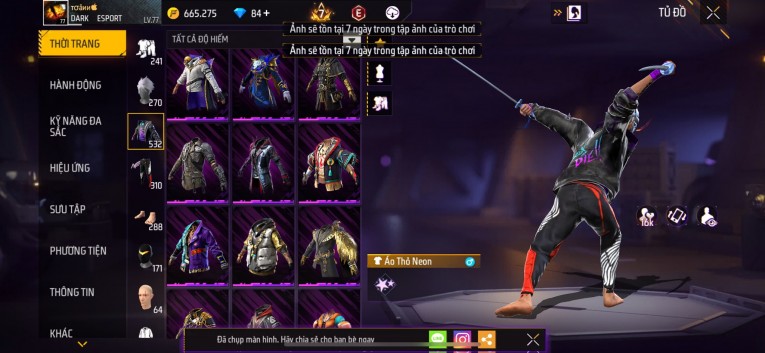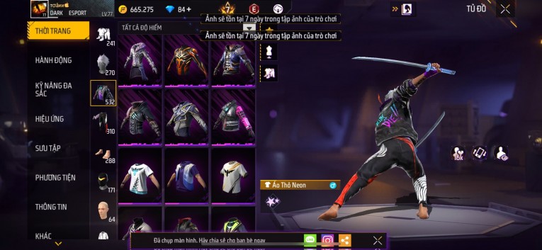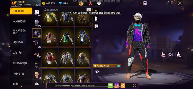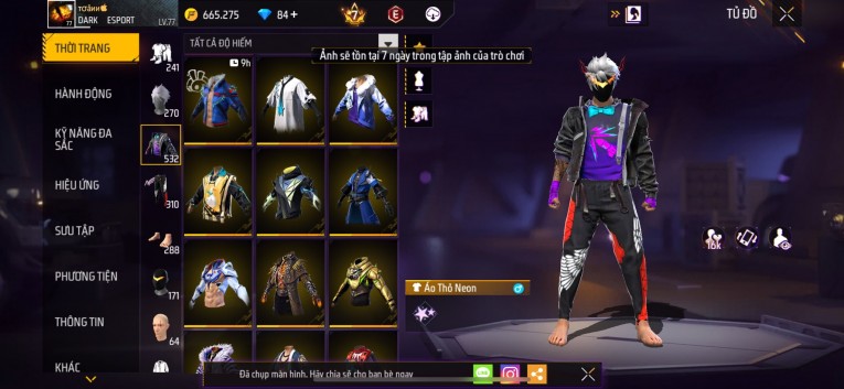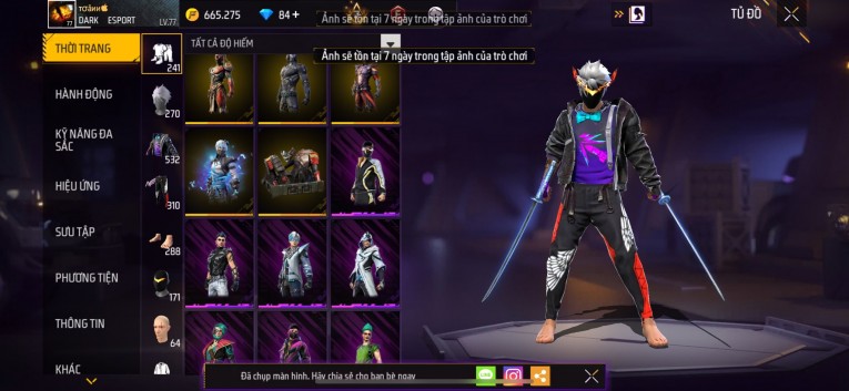 Acc chơi lâu, nhiều skin súng xịn, đầy đủ áo và phụ kiện nam. Đồ đủ dùng, đẹp mắt – vào chơi là chiến ngay! Phù hợp anh em thích skin đẹp, súng mạnh, acc ổn định.